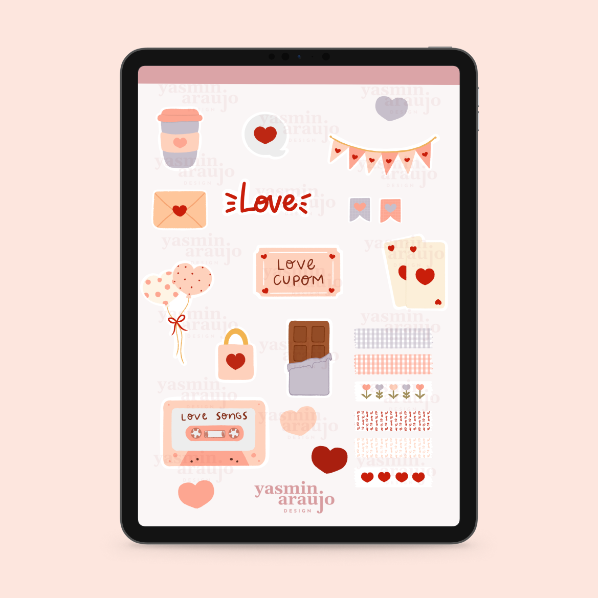 Essa cartela de adesivos digitais inclui adesivos pré-cortados e uma cartela inteira que pode ser usado com Goodnotes, Notability, Noteshelf e outros aplicativos de planejamento digital. A cartela contém adesivos ilustrados e escritos.