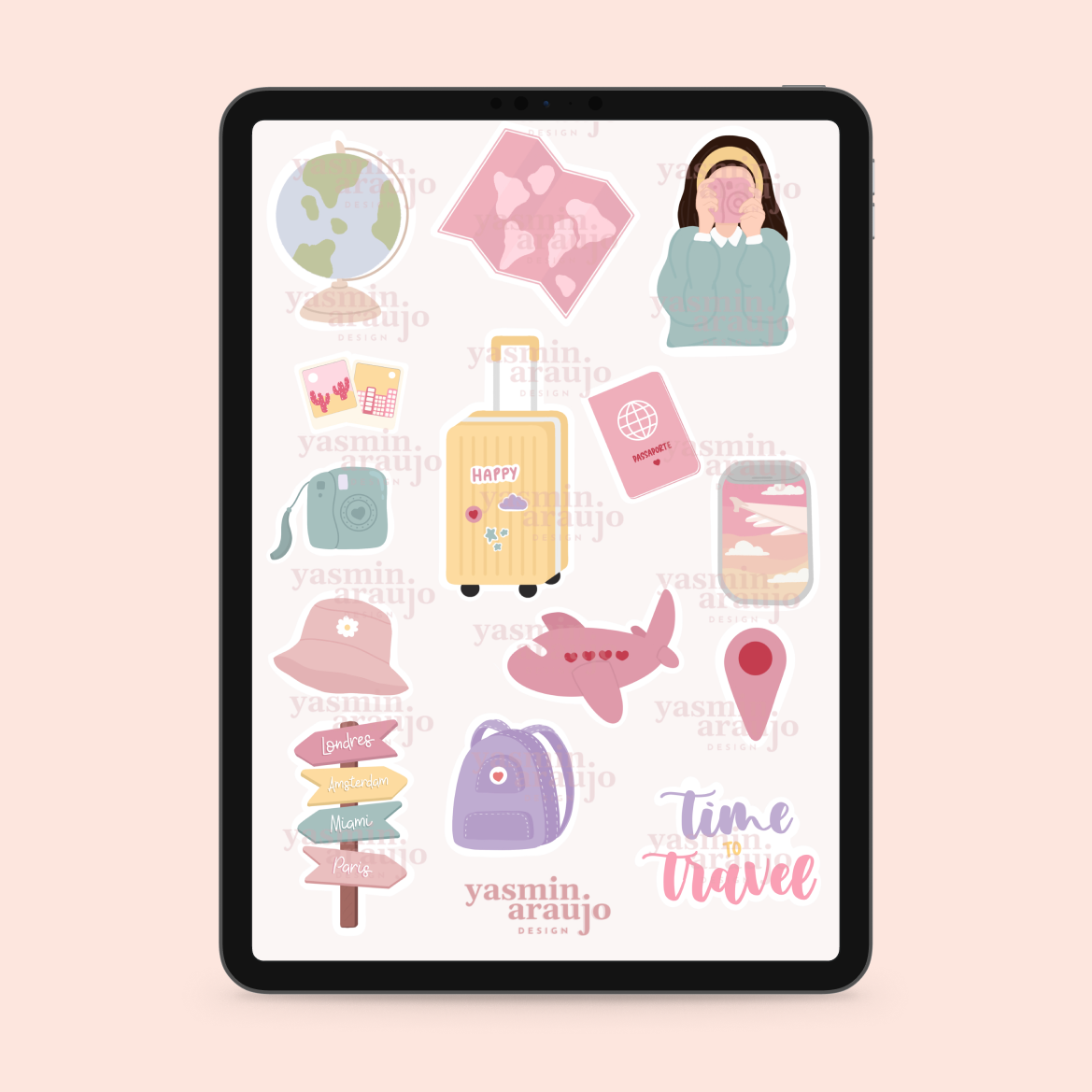 - 14 adesivos digitais ilustrados em formato PNG pré-cortados