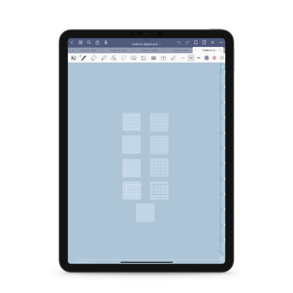 Com 9 tipos de folhas, o Caderno Azul te possibilita escolher qual folha te agrada mais no momento de anotar.