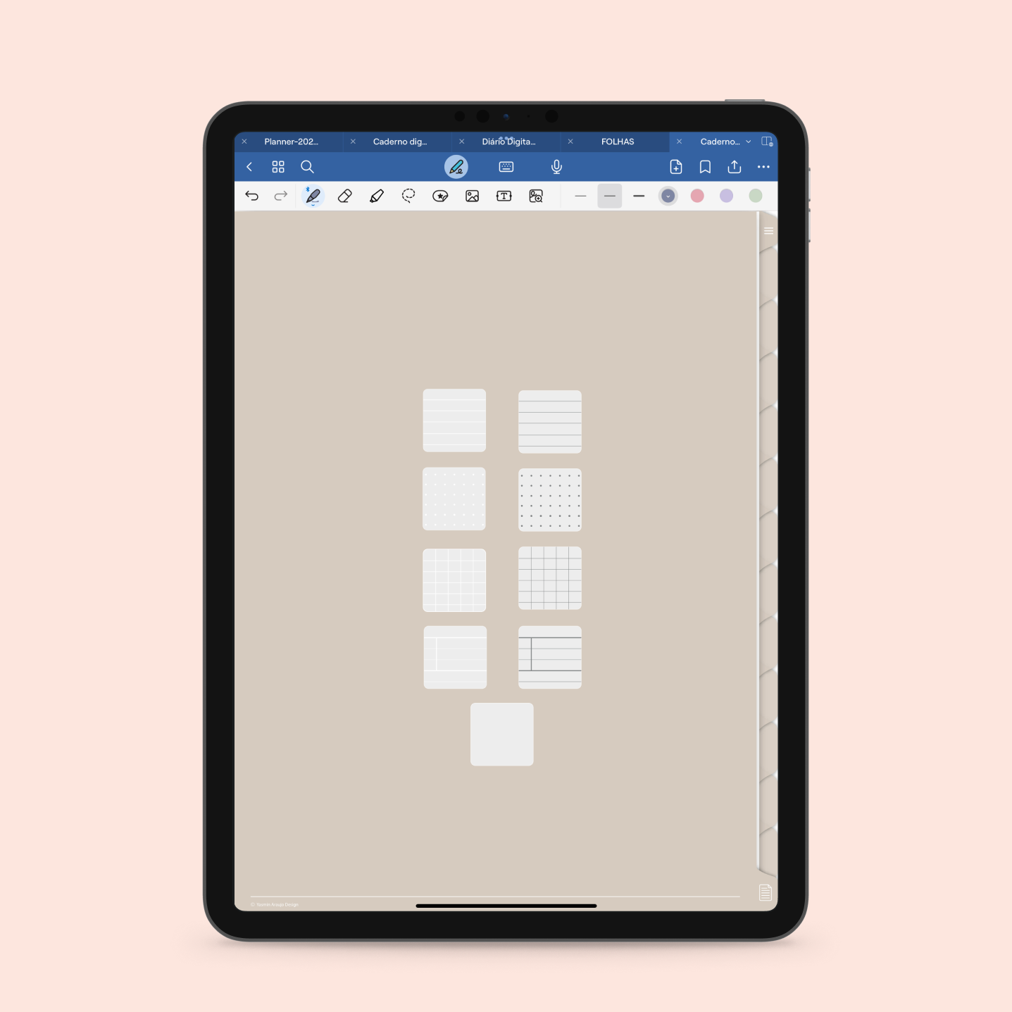Com 9 tipos de folhas, o Caderno Digital – Doguinhos Aquarela te possibilita escolher qual folha te agrada mais no momento de anotar.