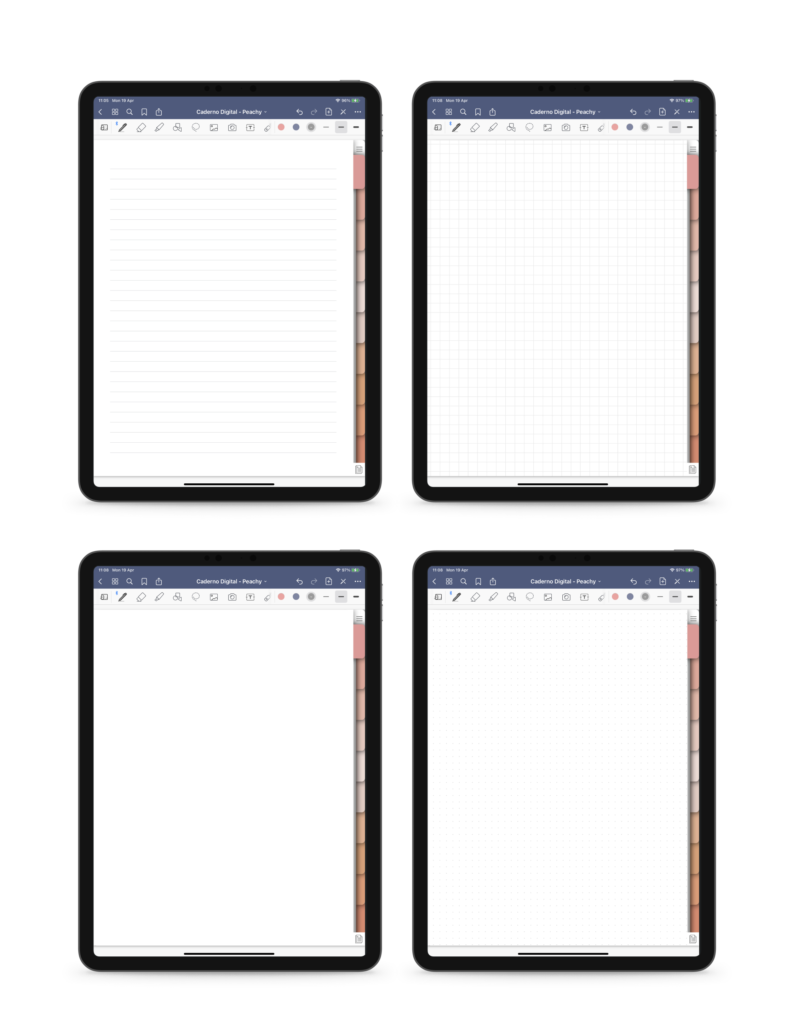 Com 4 tipos de folhas, o Caderno Digital Peachy te possibilita escolher qual folha te agrada mais no momento de estudar.