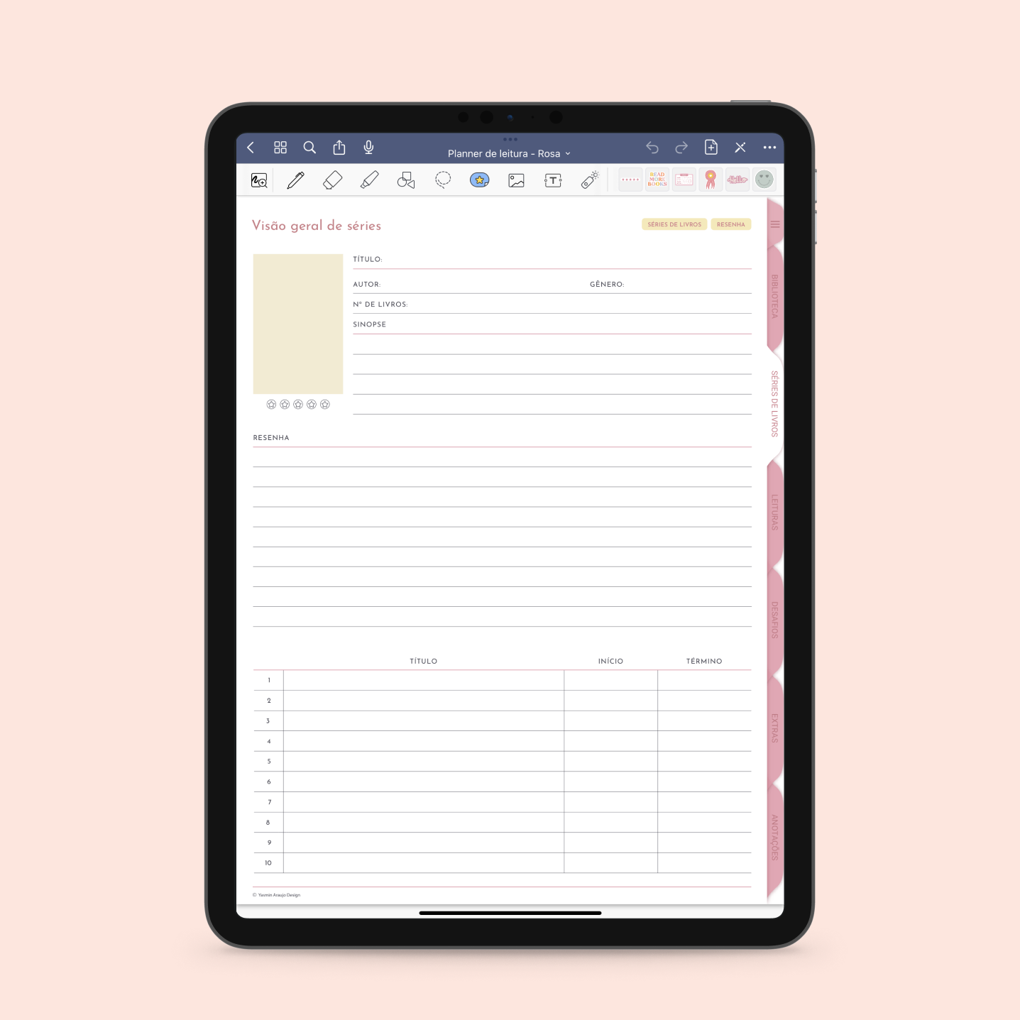 É um planner para anotar o que está lendo, o que quer ler e o seu progresso de leitura. O planner possui planejamento, desafios e muito mais.