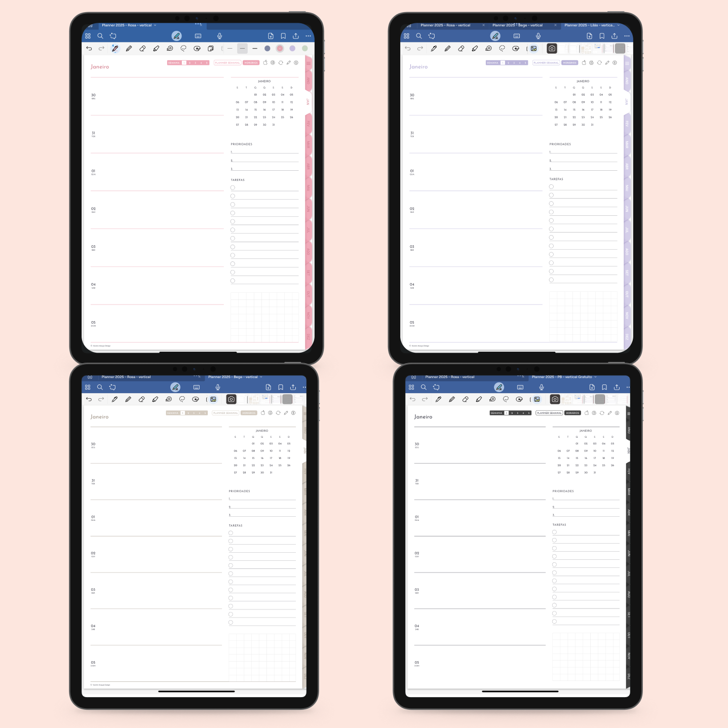 Com o Planner Digital 2025, você vai organizar a sua vida de outra maneira. Com planejamento anual, mensal, semanal e diário você vai ter mais tempo para fazer as coisas que ama. Este é o planner que você estava procurando! A combinação de elementos de design exclusivos e layouts estratégicos com links elevará a organização da sua vida.